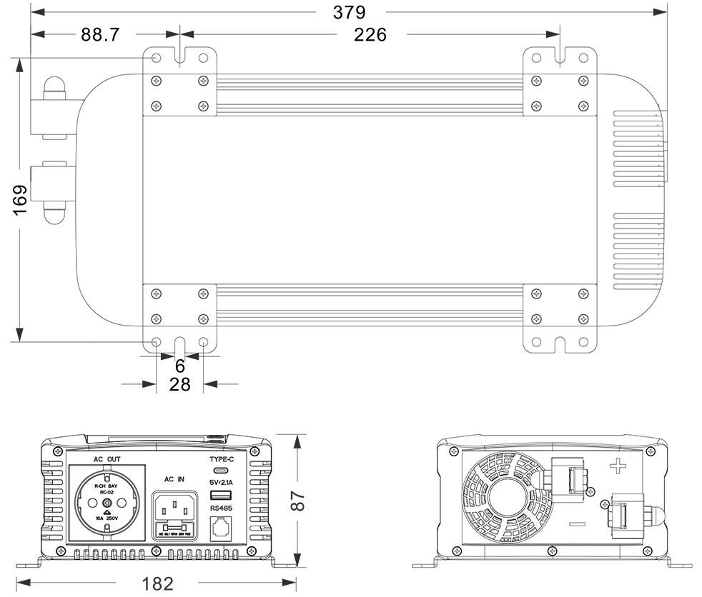 Други Димензије (Ш×В×Д) 379×182×87 мм