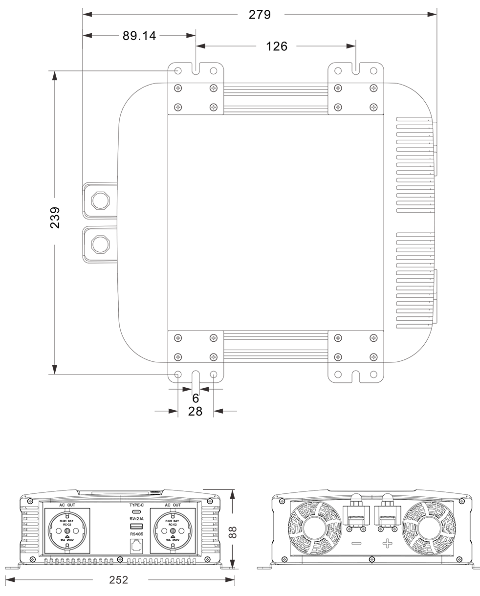 Други Димензије (Ш×В×Д) 279×252×88 мм