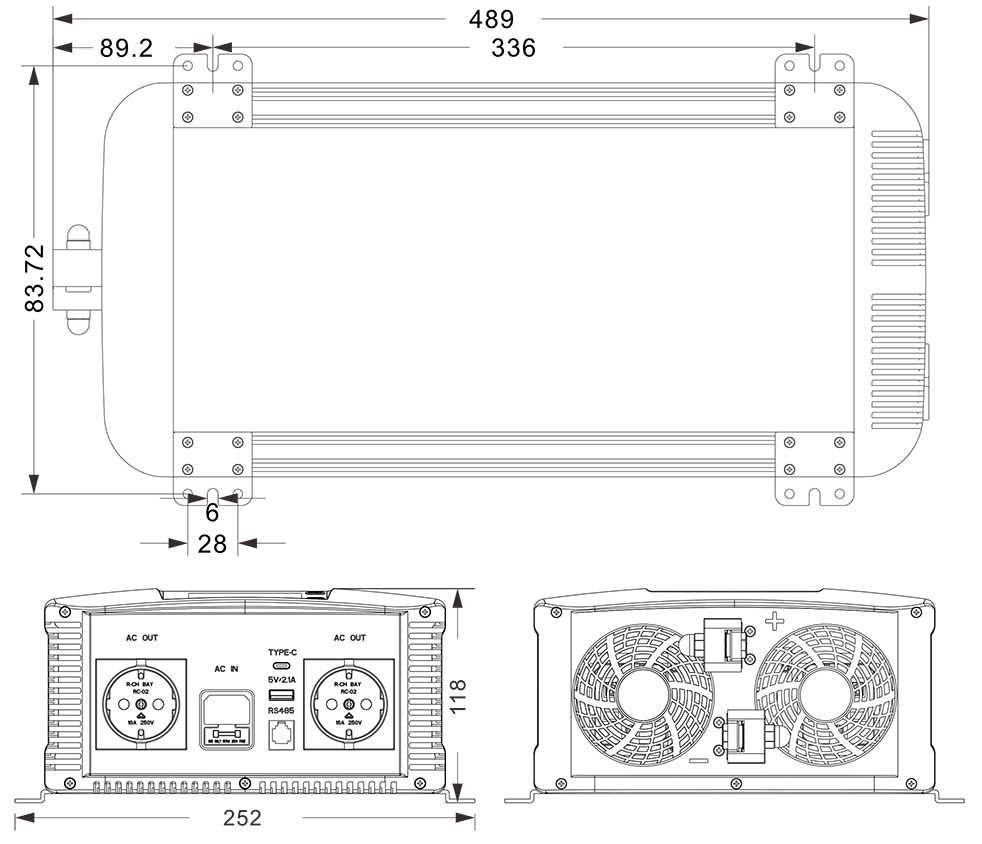 Други Димензије (Ш×В×Д) 489×252×118 мм