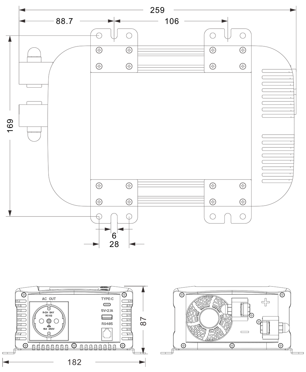 Други Димензије (Ш×В×Д) 259×182×87 мм