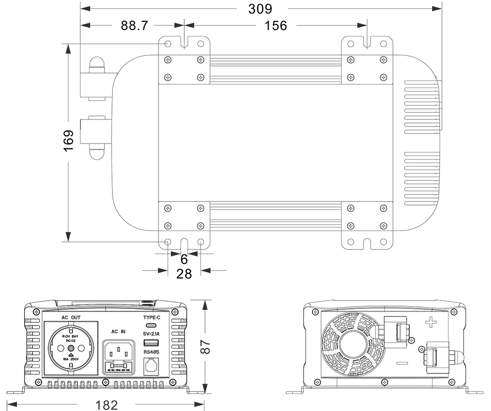 Други Димензије (Ш×В×Д) 309×182×87 мм